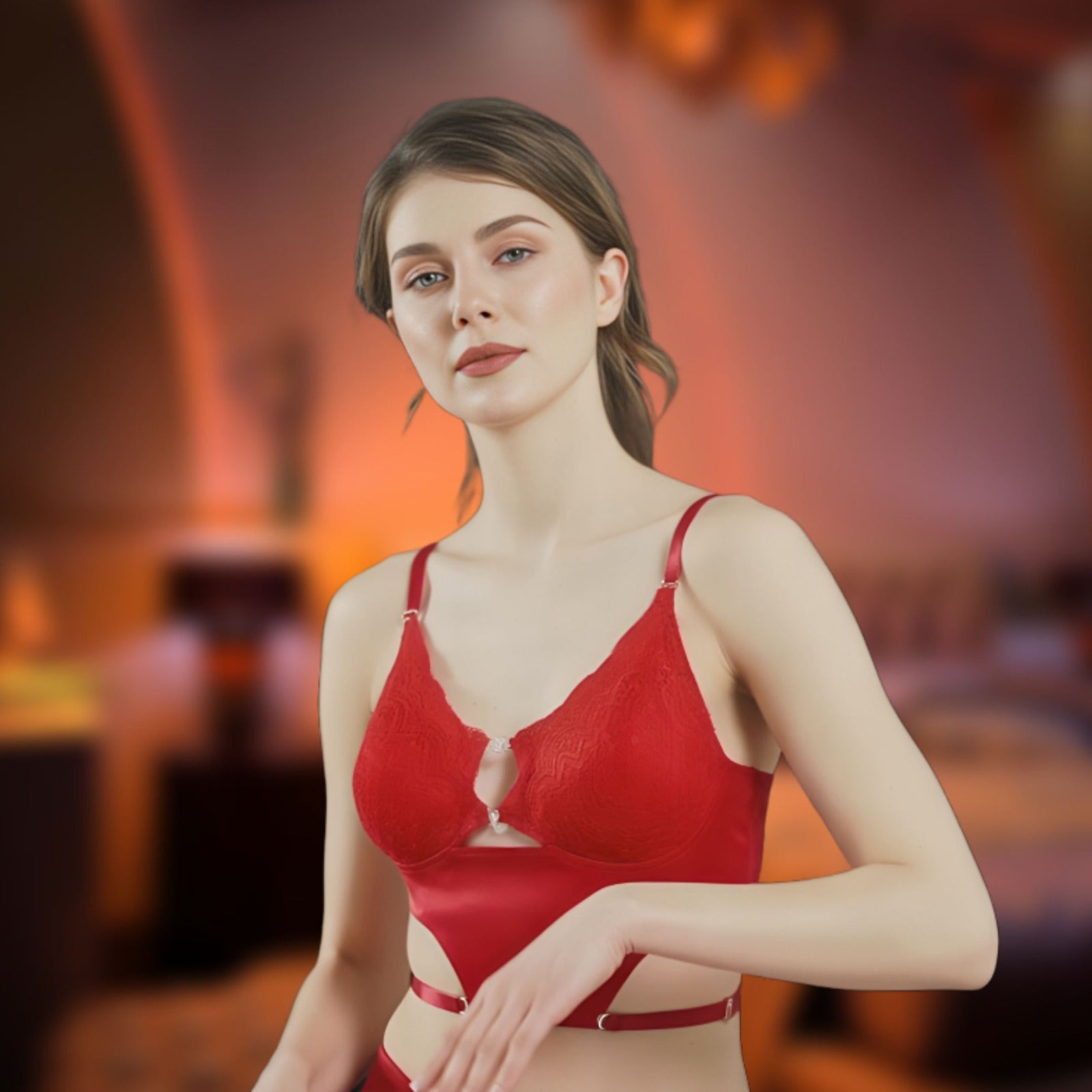 Lace Cutout Lingerie Set Soft & Stretchable - 2 Piece padded Bra & Panty with Adjustable Straps
